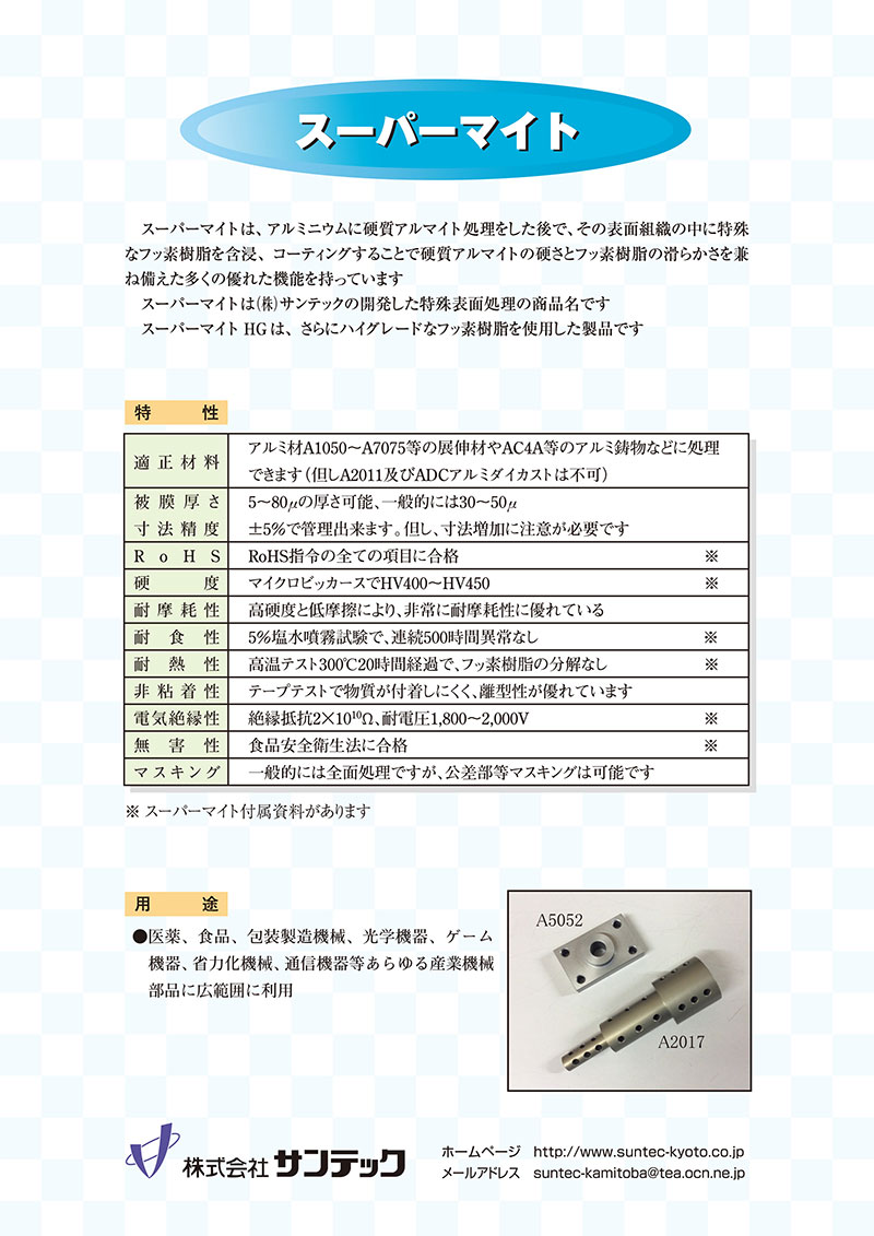 株式会社サンテックは、アルマイト、めっき、電解研磨などの金属表面処理加工業を営む会社です。